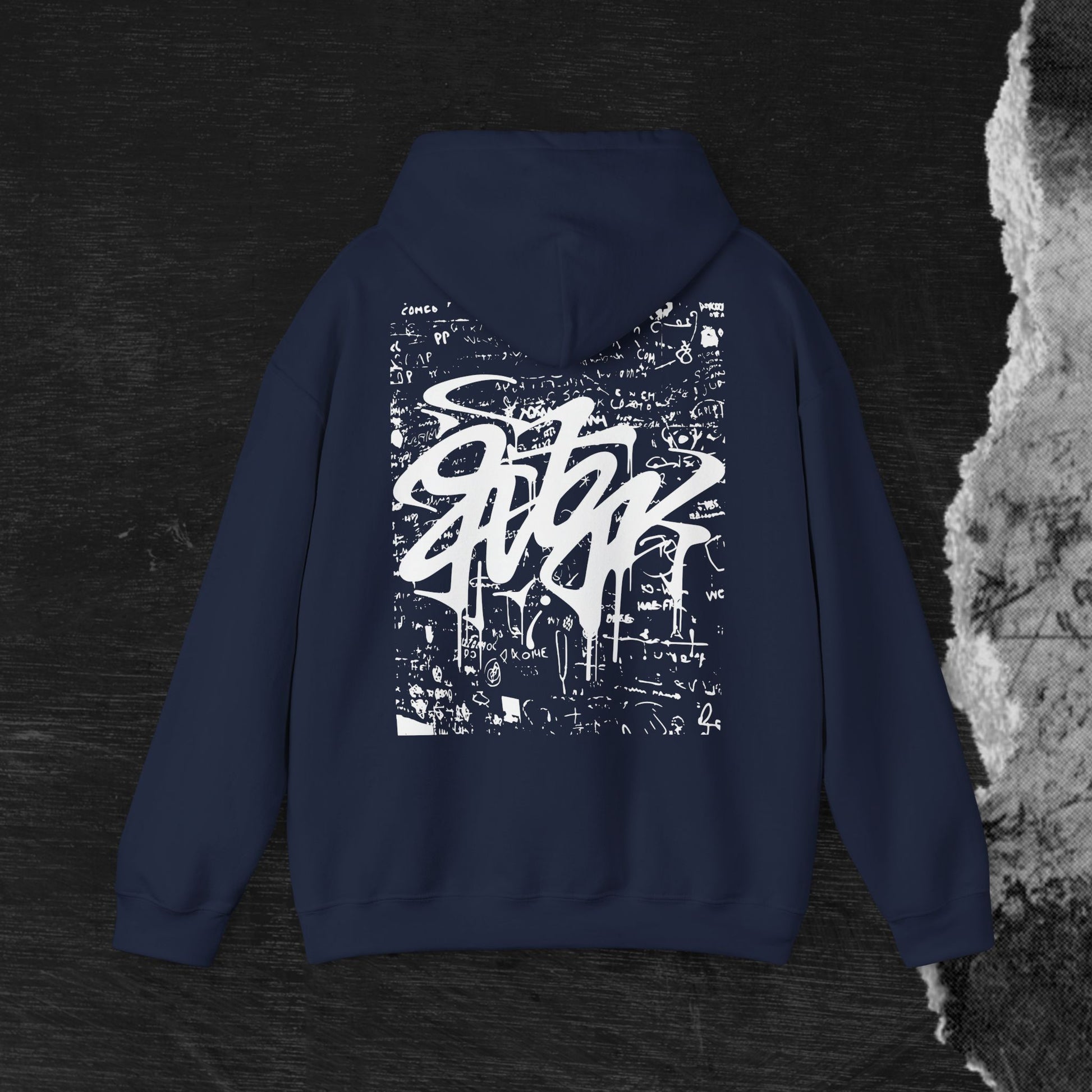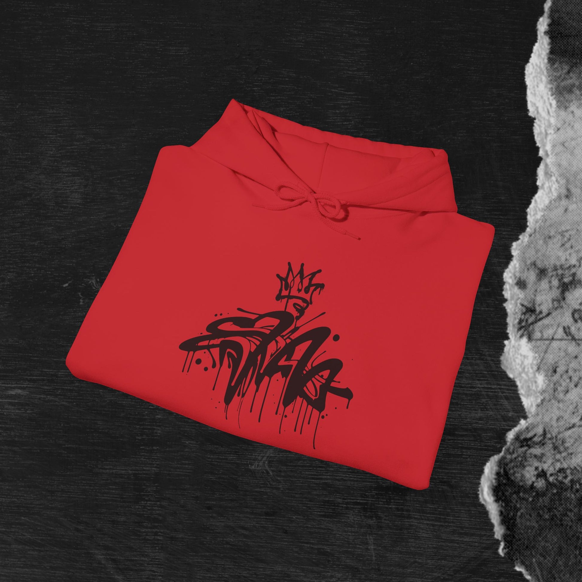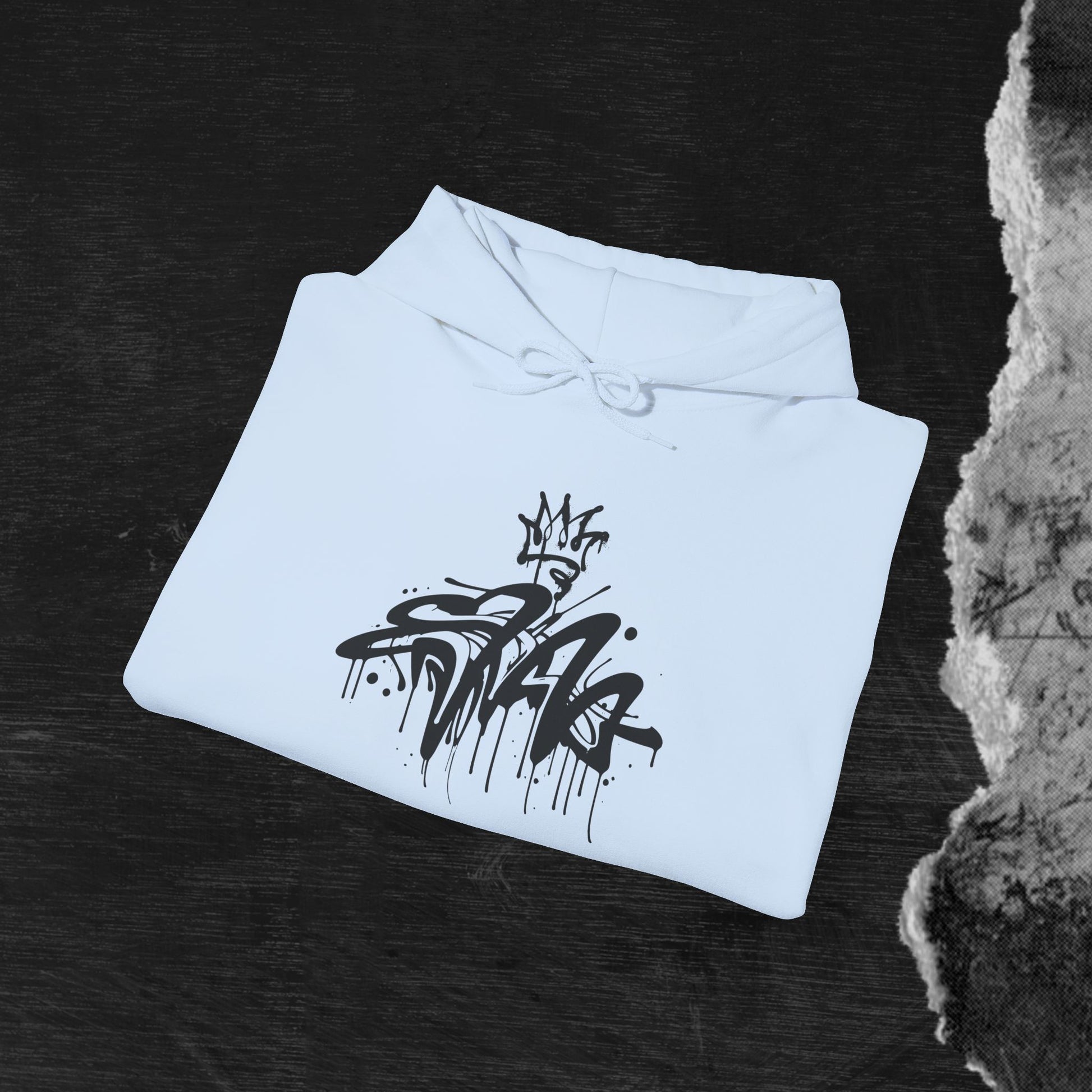 A graffiti-inspired Hoodie with a school board, king, and trap design, giving off a cool and edgy vibe. Perfect for those who love urban art and street style. Ideal for casual wear, school, or hanging out with friends. Relevant for back-to-school season, music festivals, and urban culture events.