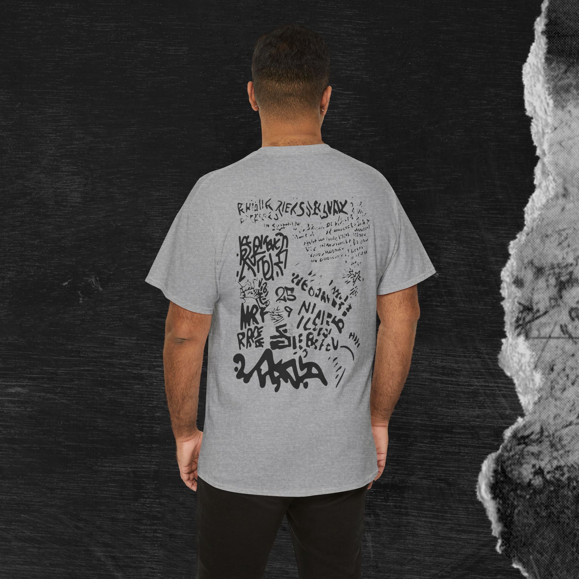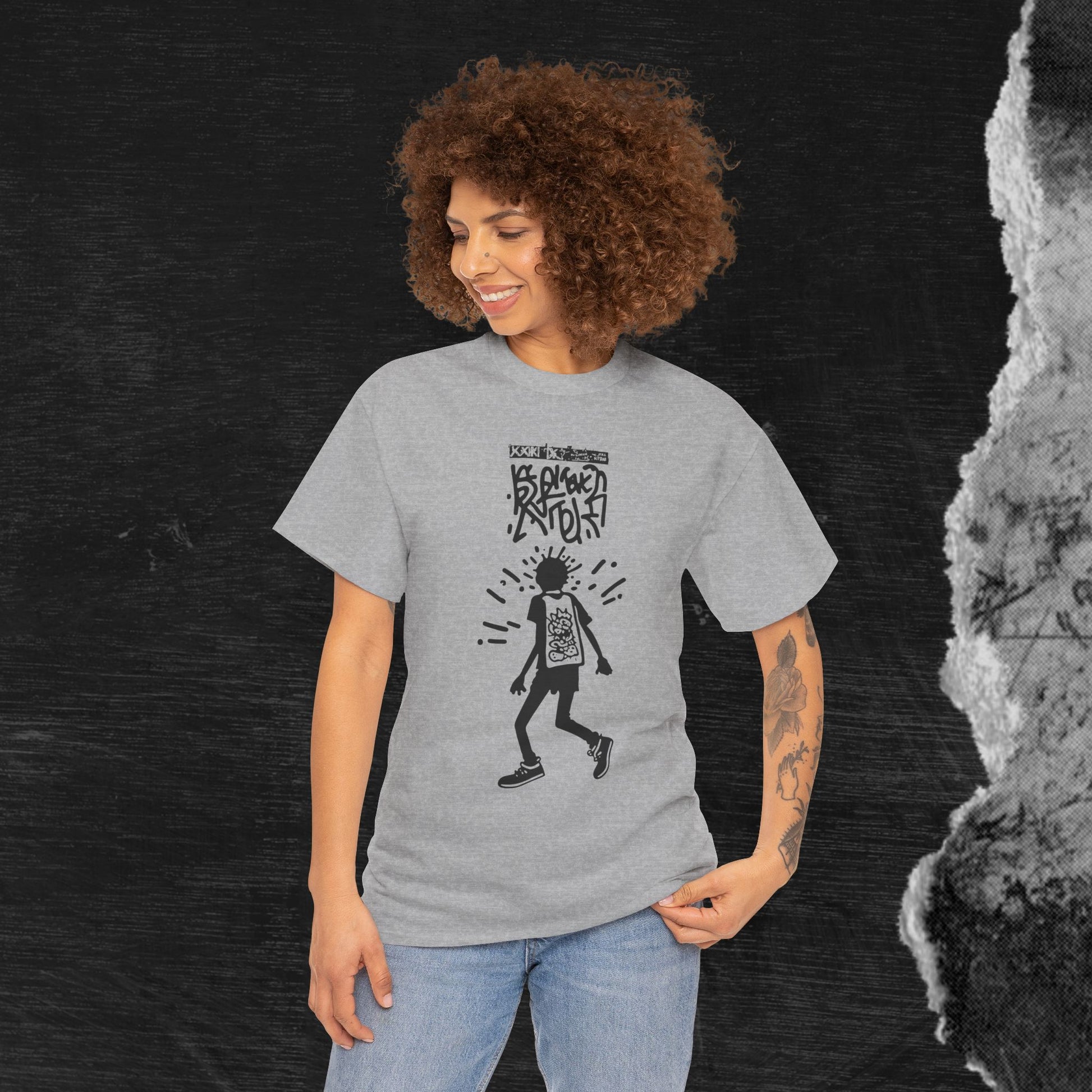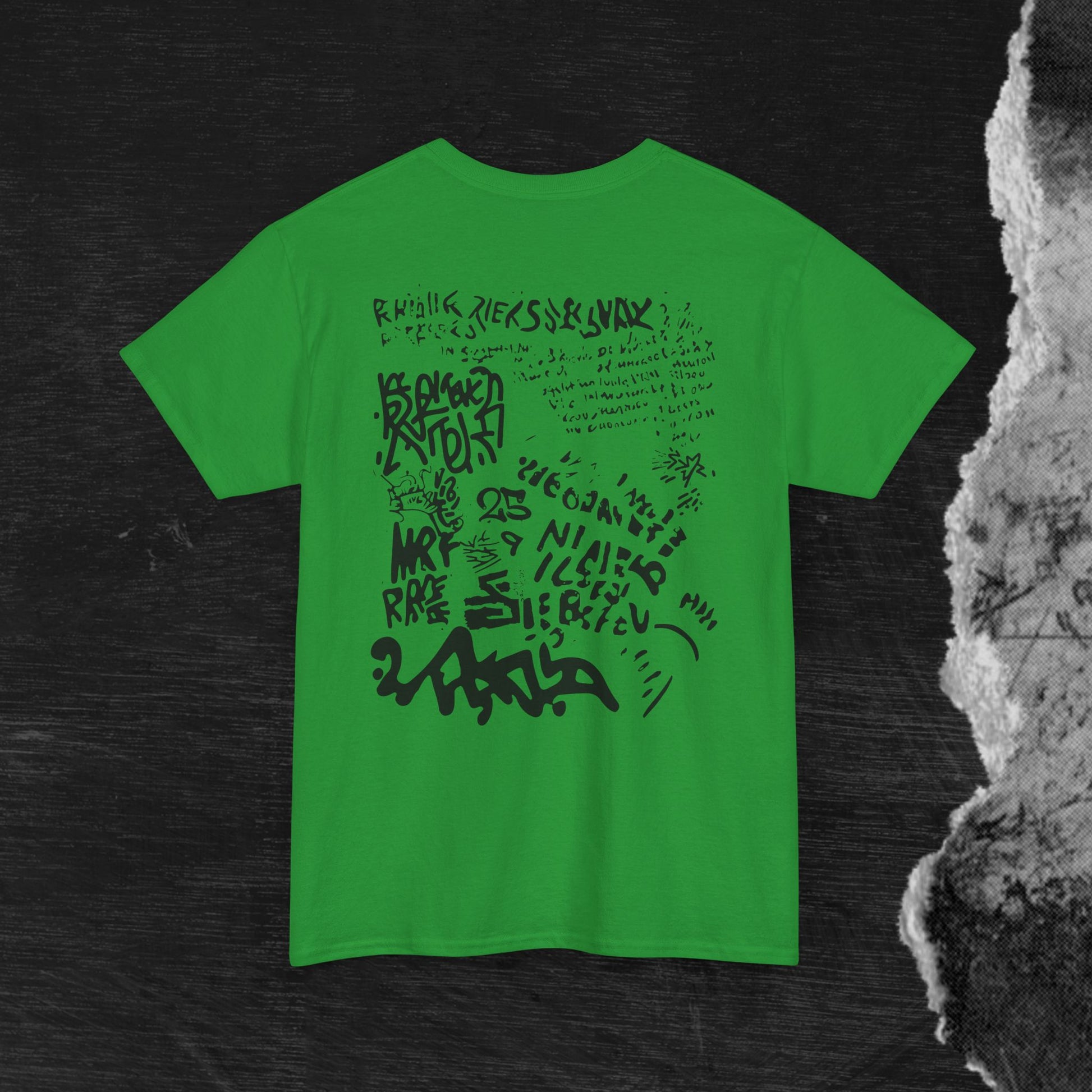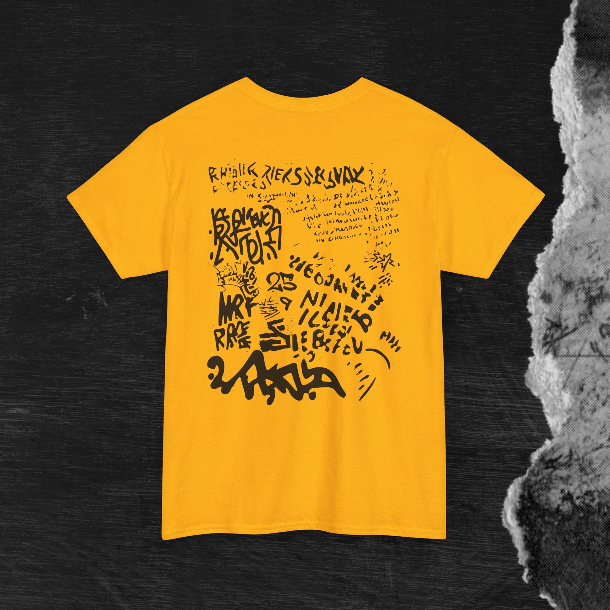 This cotton T-Shirt features a graffiti-inspired design perfect for street art enthusiasts. The unisex heavy cotton tee offers a relaxed fit and a classic crew neckline, making it versatile for everyday wear. Ideal for adults who appreciate unique urban style, this shirt is great for casual outings and art-related events.