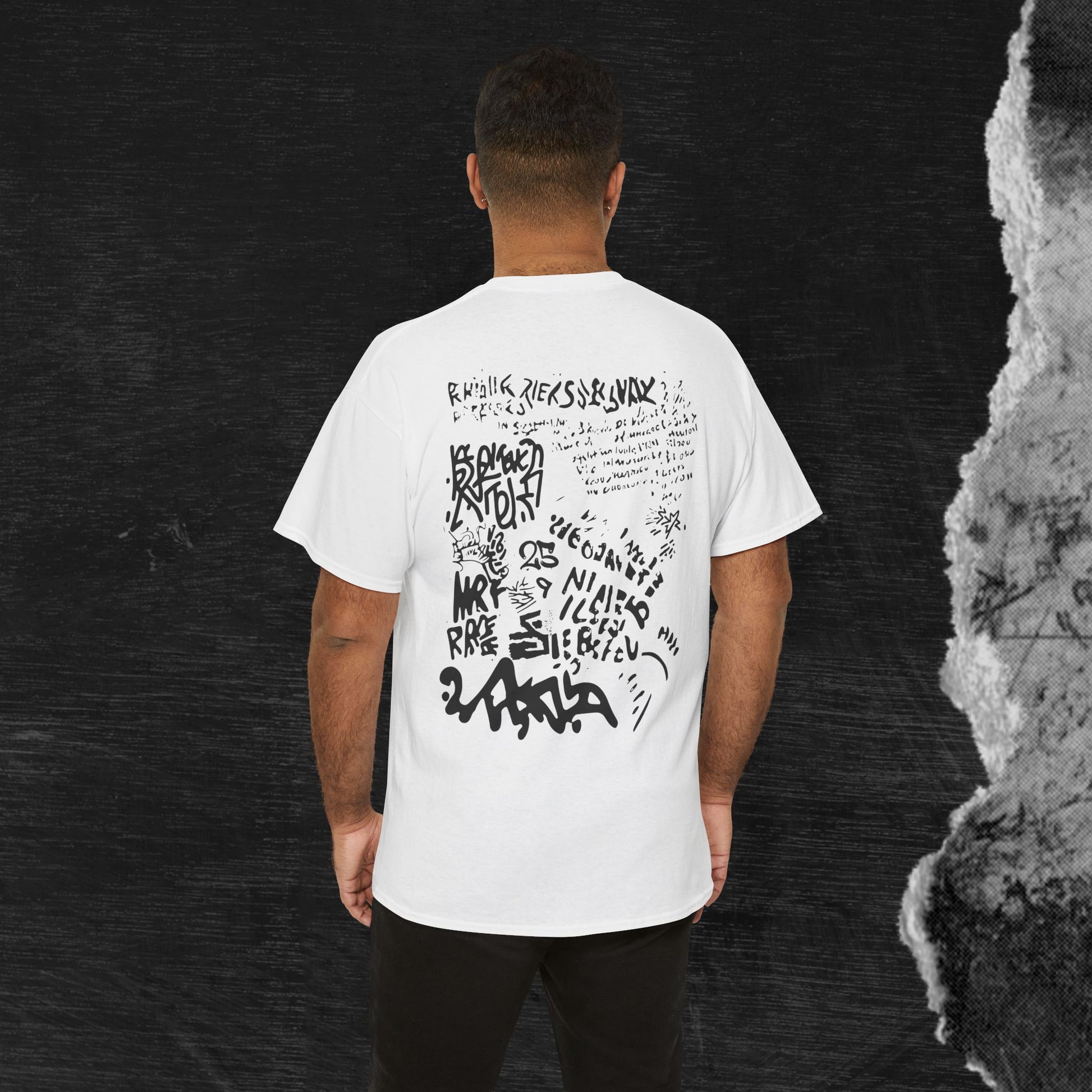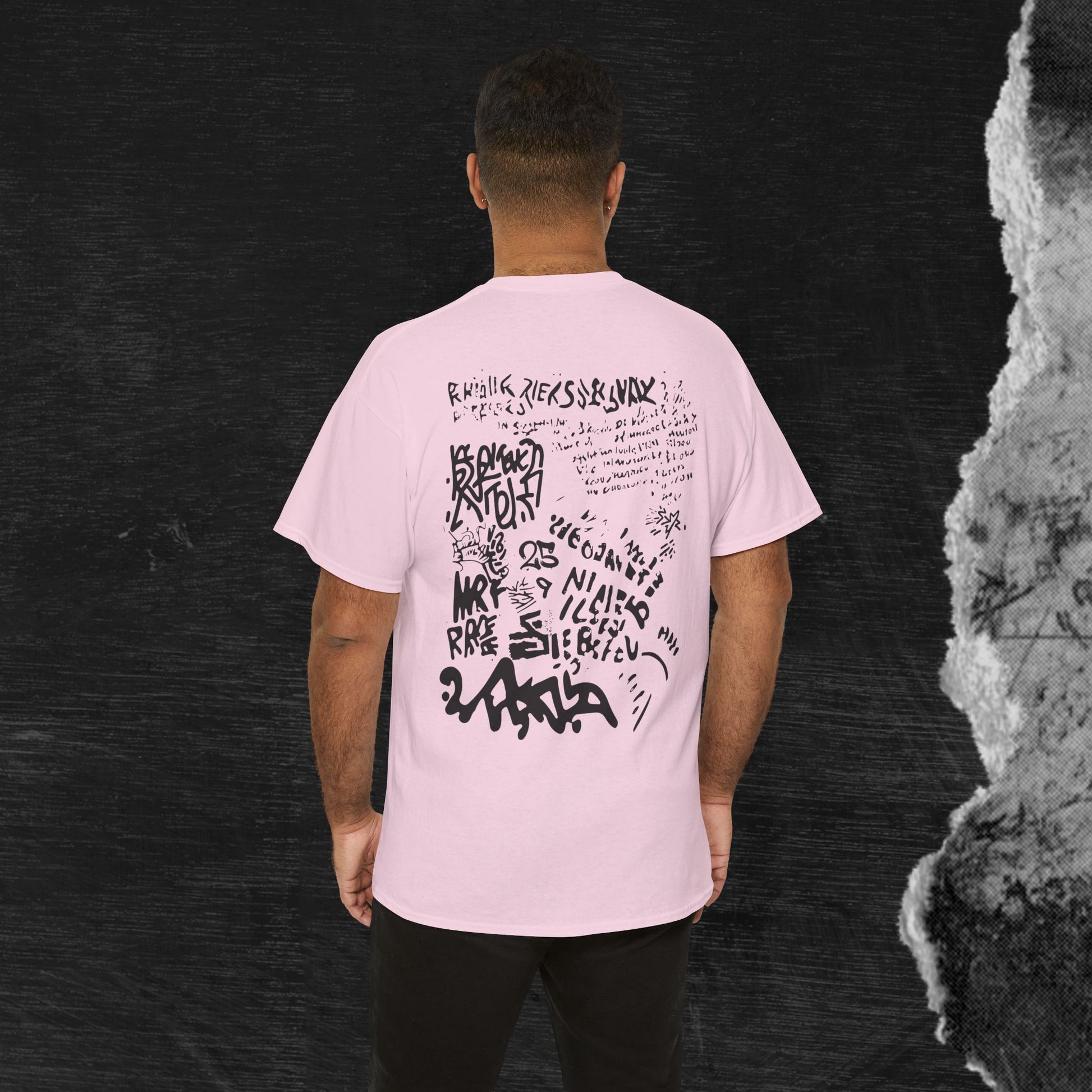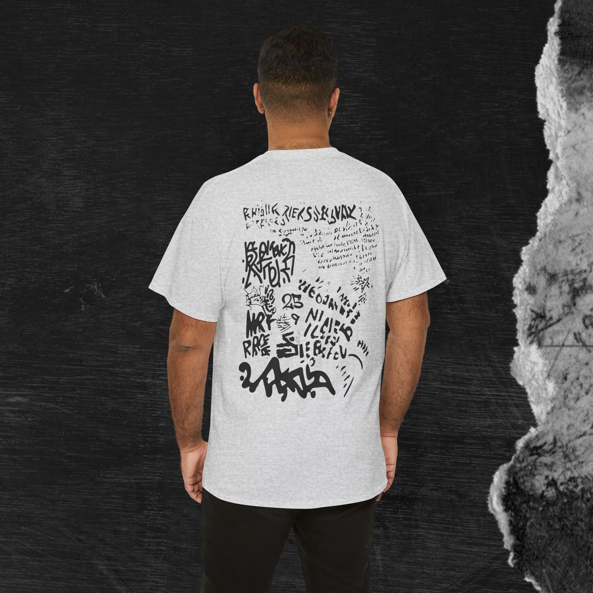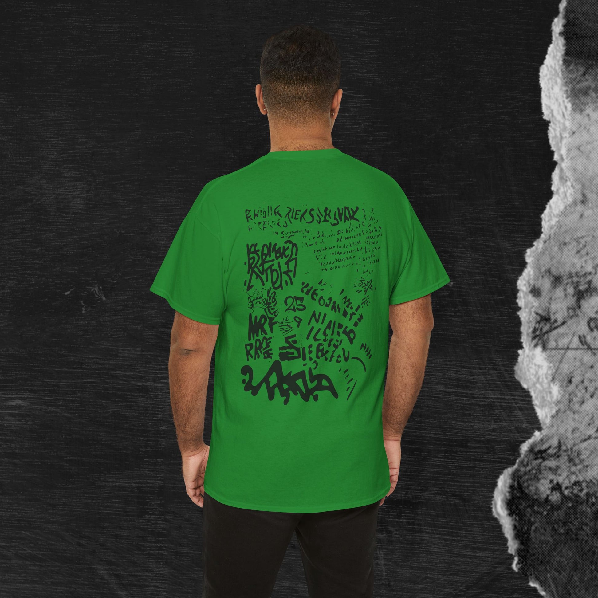 This cotton T-Shirt features a graffiti-inspired design perfect for street art enthusiasts. The unisex heavy cotton tee offers a relaxed fit and a classic crew neckline, making it versatile for everyday wear. Ideal for adults who appreciate unique urban style, this shirt is great for casual outings and art-related events.