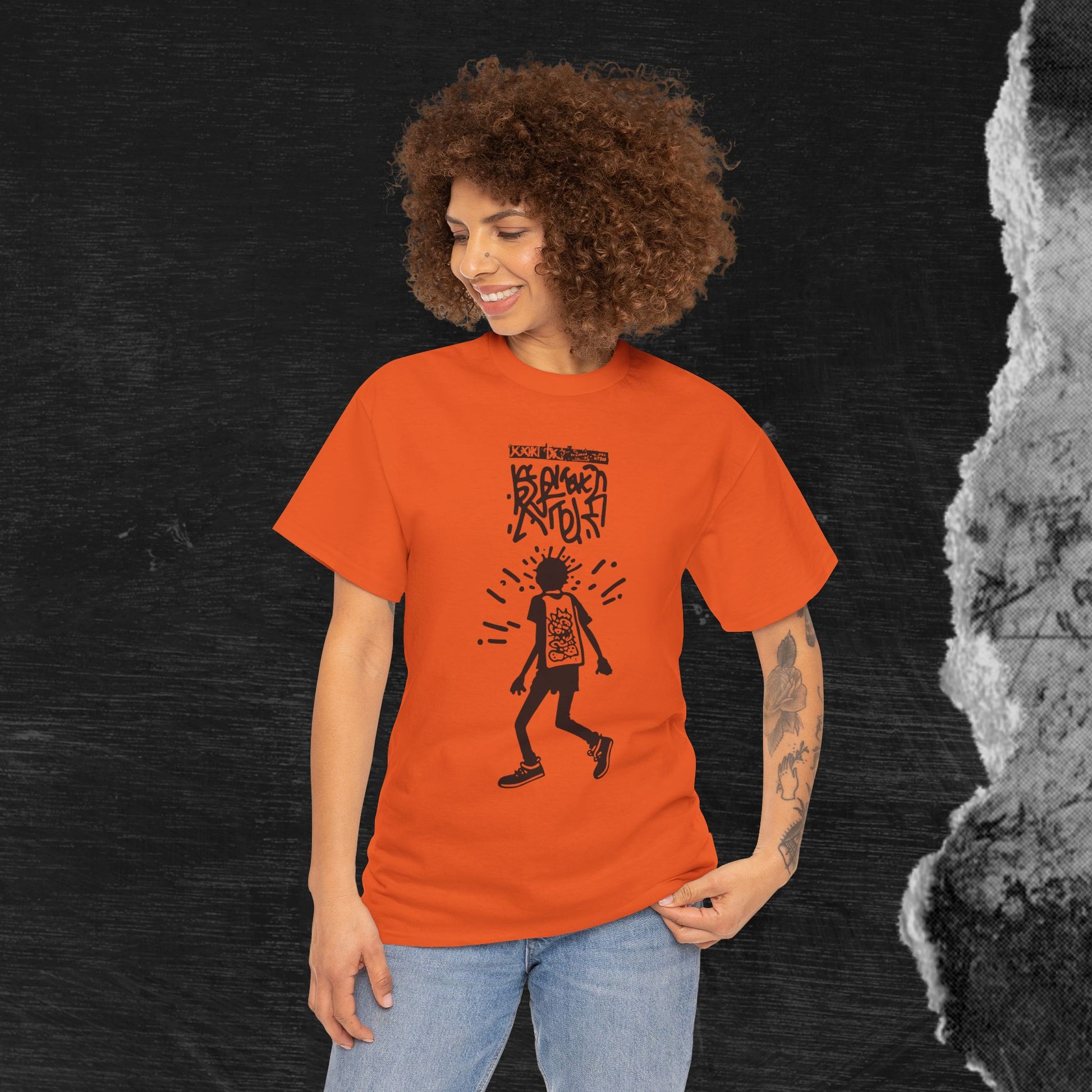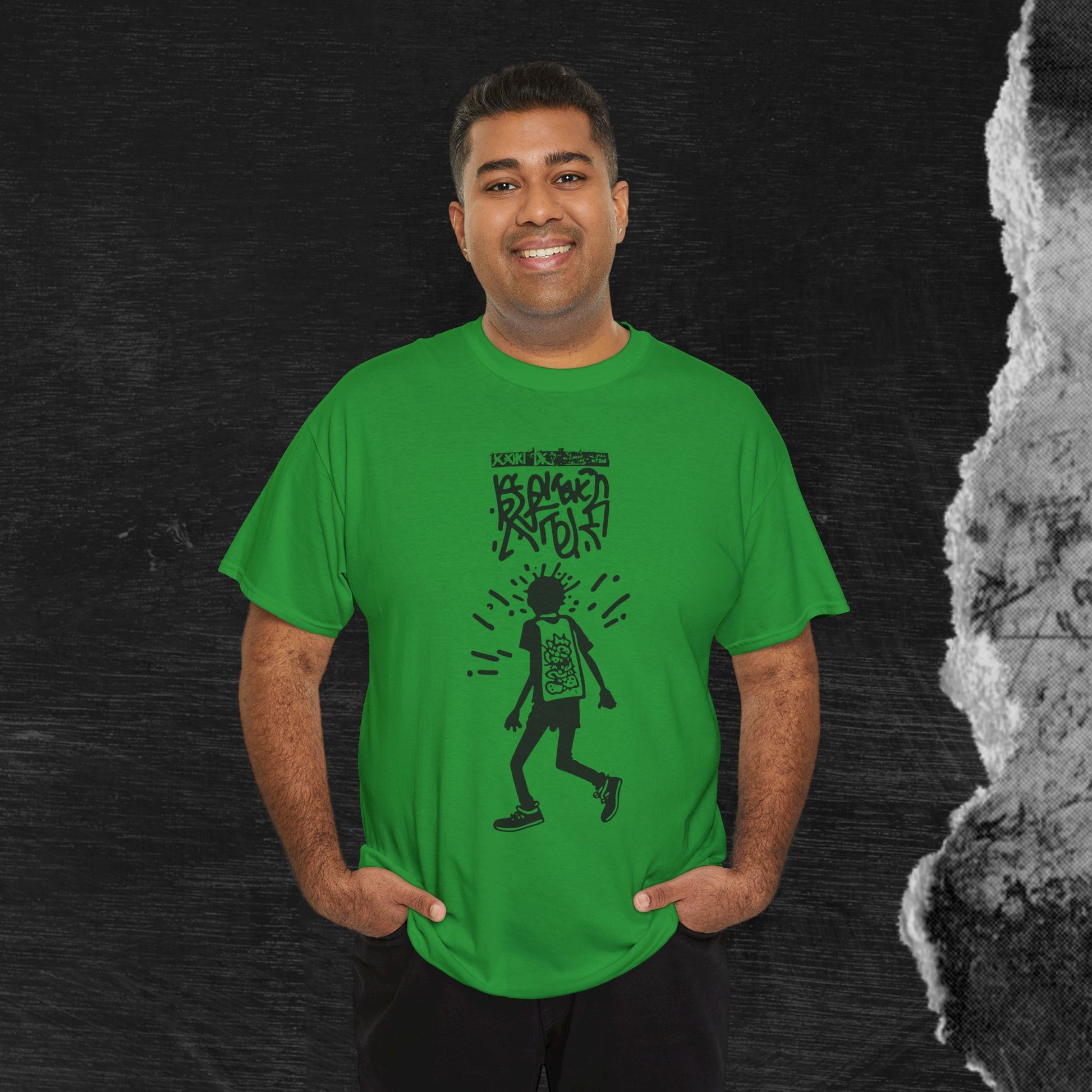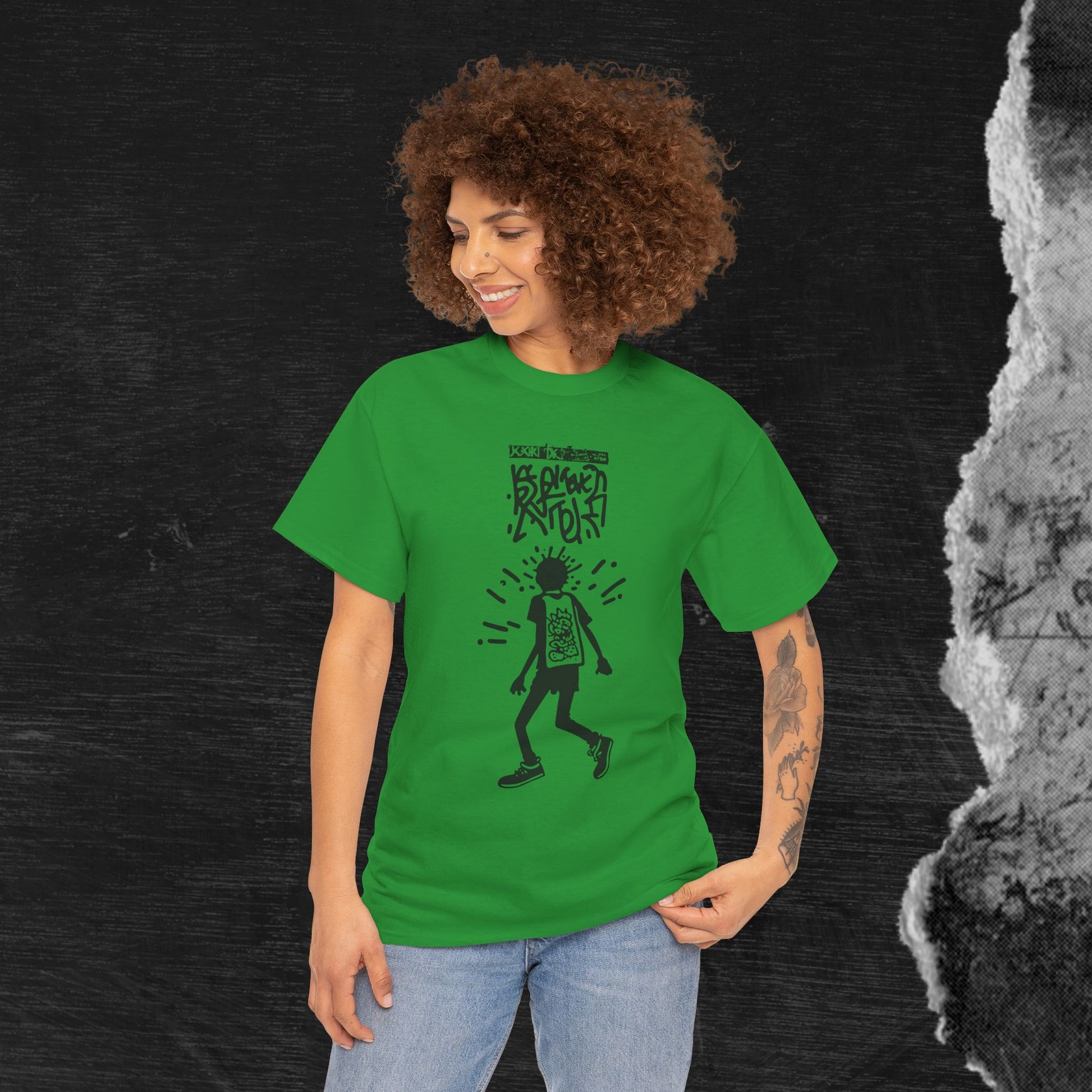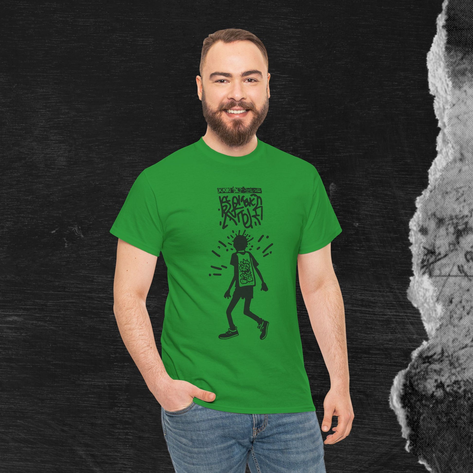 This cotton T-Shirt features a graffiti-inspired design perfect for street art enthusiasts. The unisex heavy cotton tee offers a relaxed fit and a classic crew neckline, making it versatile for everyday wear. Ideal for adults who appreciate unique urban style, this shirt is great for casual outings and art-related events.